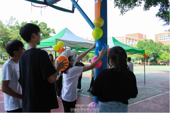 首先,活动进行了“铭记强国信念,勇担强国使命”环节。每组派出7到8名选手参加,小组自由分工。各组选手需要吹八个气球,并在气球上分别写上“请党放心,强国由我”八个字。待十个气球完成后,由两人通过背对背夹气球的方式将气球运送至终点,按照文字顺序组成“请党放心,强国由我”,并将气球贴在柱子上。各组选手们干劲十足,现场气氛逐渐热烈起来。