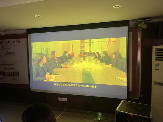 上午10:30分,会谈正式开始。首先,校企合作事业部唐显锋主任就此次会谈做了简单介绍。红海集团陈丽经理播放了公司宣传片。