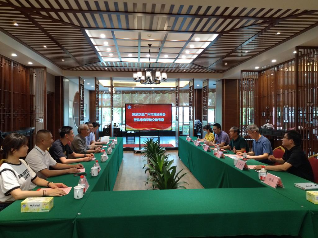2022年6月23日下午,管理学院院长李招忠教授、副院长秦陇一教授、公共管理系主任袁仕海副教授、特聘副教授李爱军博士、行政办公室主任潘思媚老师、工商管理系教师田宇老师在图书馆一楼美术馆与广州市潮汕商会魏志松轮值会长、吴培坤秘书长、张焕楚主任、蔡臻畅理事、陈楚生理事、陈彦君秘书一行等来宾就校企合作相关事宜进行了深入交流和会谈。