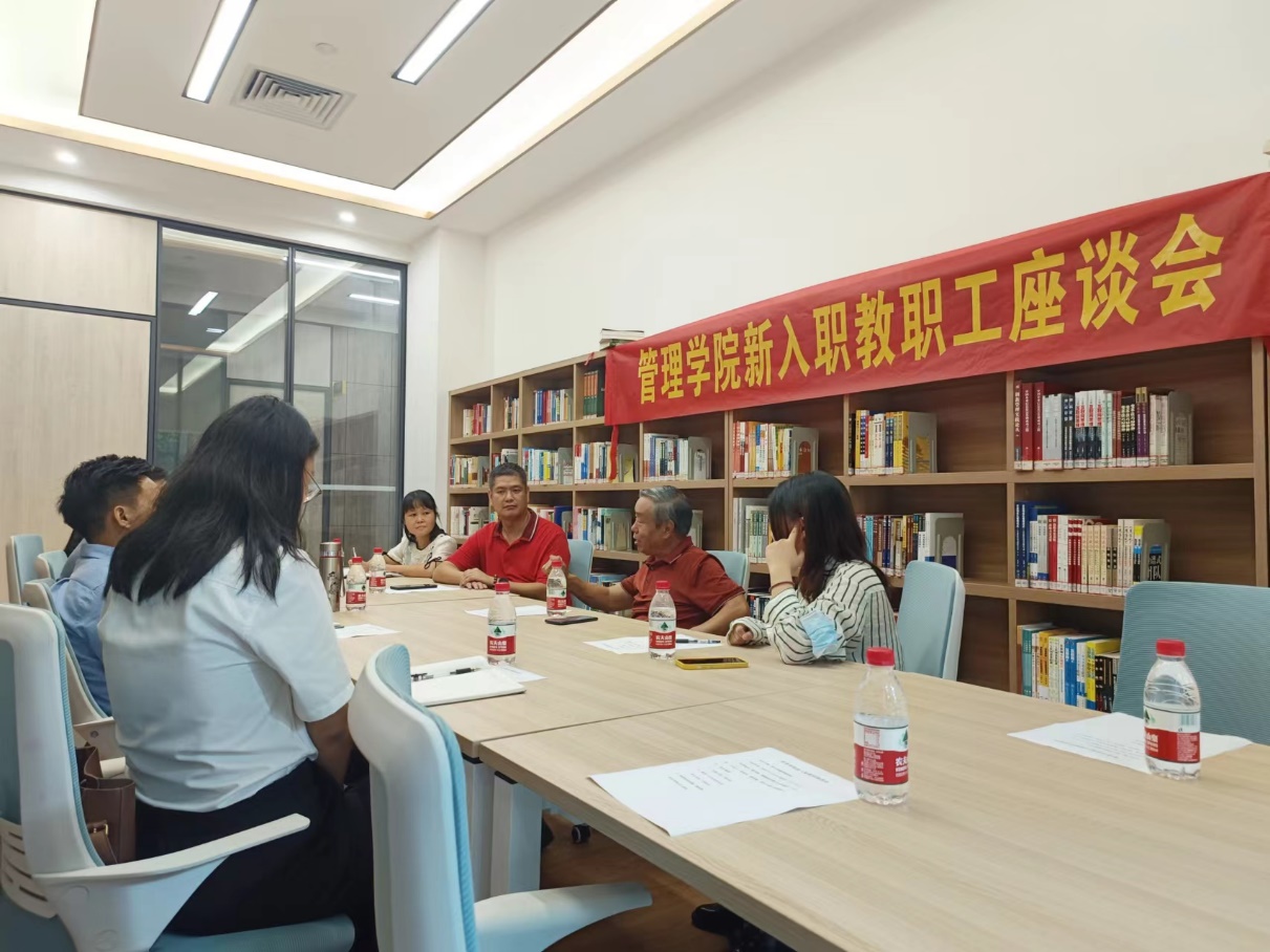 为关心青年教师成长,使新入职教师尽快适应学院环境,更快更好地投入工作,在中秋节与教师节“双节”来临之际,管理学院于2022年9月6日下午在教师发展中心召开新入职教职工座谈会,为新入职教职工送上诚挚的节日祝福。会议由李招忠院长主持,办公室主任潘思媚及新入职教职工出席了本次会议。
