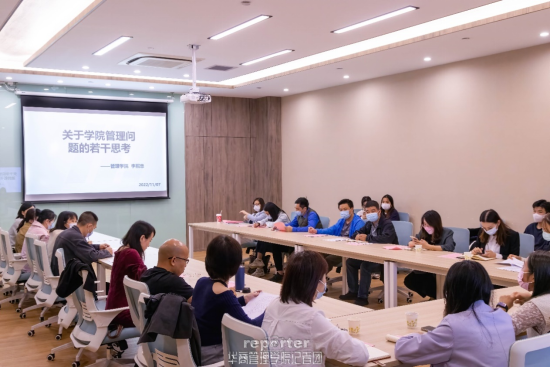 在管理学院机构调整和人事安排完成之后,2022年11月8日下午2时30分,学院于教师发展中心互动室5举行管理干部培训会议,除疫情原因受限者外所有管理团队参会。