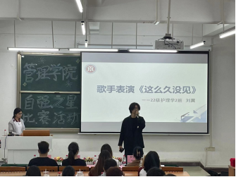 活动期间,22级护理学2班刘翼同学为大家倾情演唱了一首《这么久没见》,活跃了现场气氛,选手们紧张的心情得到了缓解,使他们能够更好地在台上发光发热。