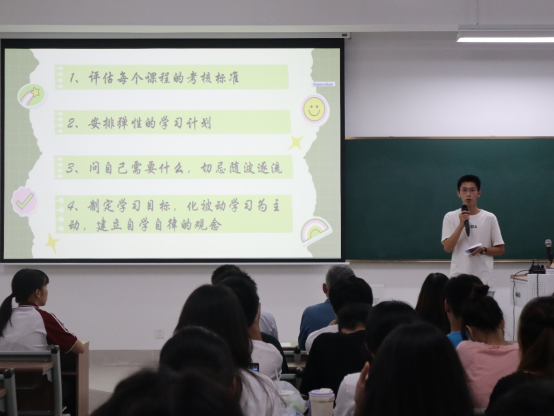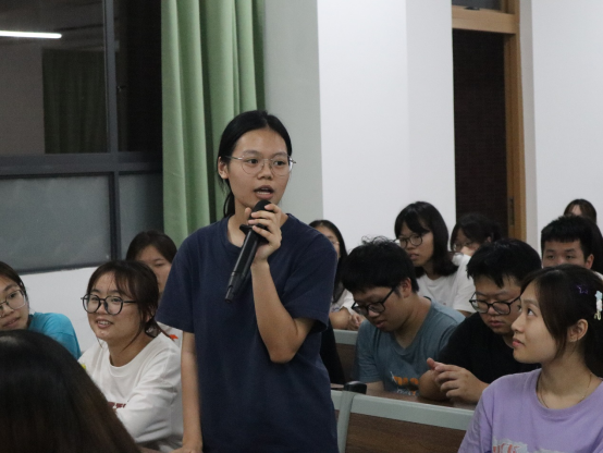会议的最后是答疑解惑环节,大一新生们提出了自己在学习方面的各种困难和疑惑,老生代表们耐心地回应了大家的疑惑,并提出了宝贵的建议。