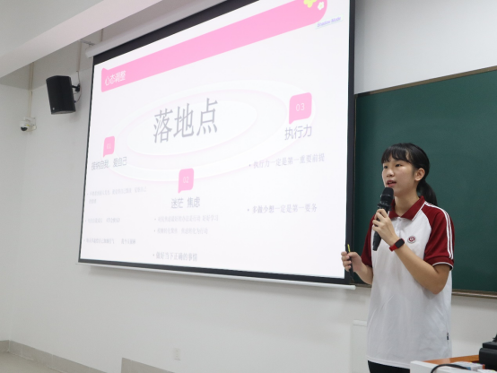 2022级工商管理专业容铭泽同学强调上课最重要的是认真听讲,在学习过程中心态的调整也起着不可忽视的作用,同时鼓励大家要学会接纳自己爱自己,认为进入新的大学学习生活阶段出现迷茫和焦虑是正常的,我们对抗焦虑的办法就是行动,要有目标和执行力,要少想多做。