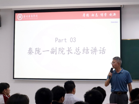 听完前面三位老生代表的分享,秦陇一副院长做了总结发言。秦陇一教授充分肯定本次交流分享会的必要性,希望同学们想清楚自己到底适合做什么,要有乐观的心态、坚韧不拔的精神、培养团队精神,化被动为主动,做人生的赢家。