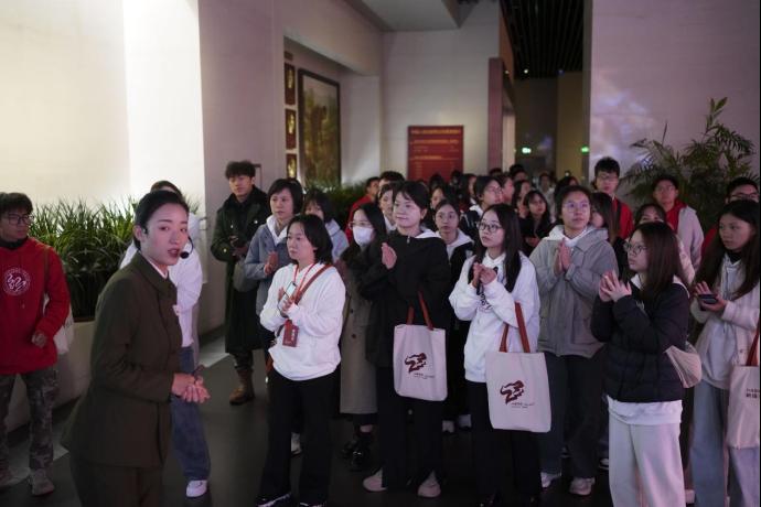 图7:师生聆听全国金牌讲解员宣讲红色故事