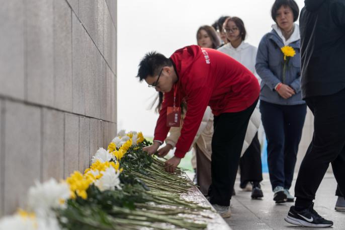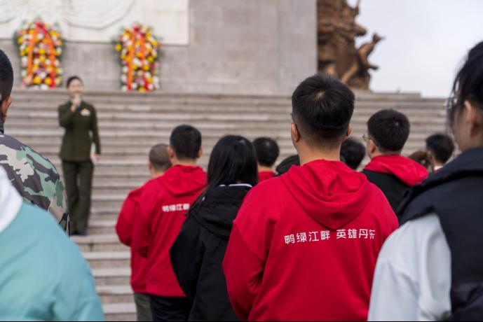图8:参赛师生向抗美援朝革命先烈献花
