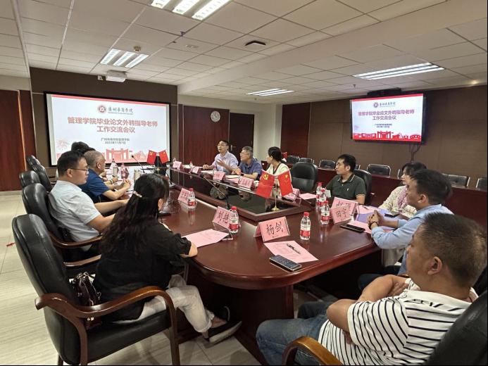 2023年11月7日下午15:30,广州华商学院管理学院在广州校区行政楼513会议室举行2024届毕业论文外聘指导教师工作交流会。出席本次会议的外聘指导老师有:暨南大学、广东药科大学、广东金融学院的教授、副教授们。会议由管理学院副院长秦陇一教授主持,院长助理袁仕海副教授、系领导及教师代表、教学秘书同时与会。