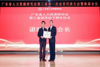 2023年11月18日,广东省人力资源研究会在广州国家级人力资源产业园召开第三届代表大会暨换届选举大会,会议选举我校特聘教授(二级)谌新民为新一届会长,聘请华商教育集团董事长廖榕就博士、省委组织部原副部长(省人力资源和社会保障厅原厅长)欧真志同志、中国人民大学(华为宪章起草组长、华厦基石董事长)彭剑峰教授为顾问委员会主任。
