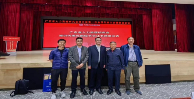 广东省人力资源研究会是经省民政厅批准的社团组织,经过十年的发展,目前拥有近百所高校(含职院)和近千家企业(华为、腾讯等)为其会员,获得广东省5A级社会组织称号。在学术研究、人才培养、服务社会和支持粤港澳大湾区建设等方面取得了瞩目成绩。换届大会有320多名会员与会,我校人力资源管理系部分教师代表参加了换届大会和当天上午举行的首届广东省人力资源服务贸易研讨会。我校教师担任该研究会负责人,对青年教师人力资源管理的学科团队培养、学科建设和服务粤港澳大湾区战略具有积极作用。