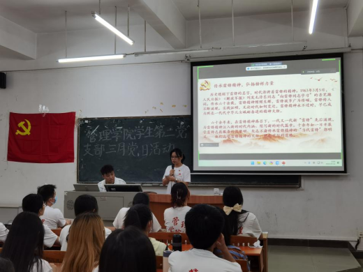 为深入学习新时代雷锋精神,了解雷锋精神的内涵和时代价值,引导党员树立正确的世界观、人生观和价值观。管理学院学生第二党支部于2024年3月22日中午12时20分在励志楼C102开展了“传承雷锋精神,弘扬榜样力量”主题党日活动。管理学院学生第二党支部全体同志参与了此次活动。