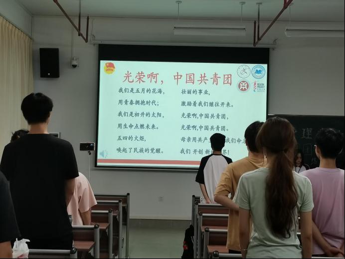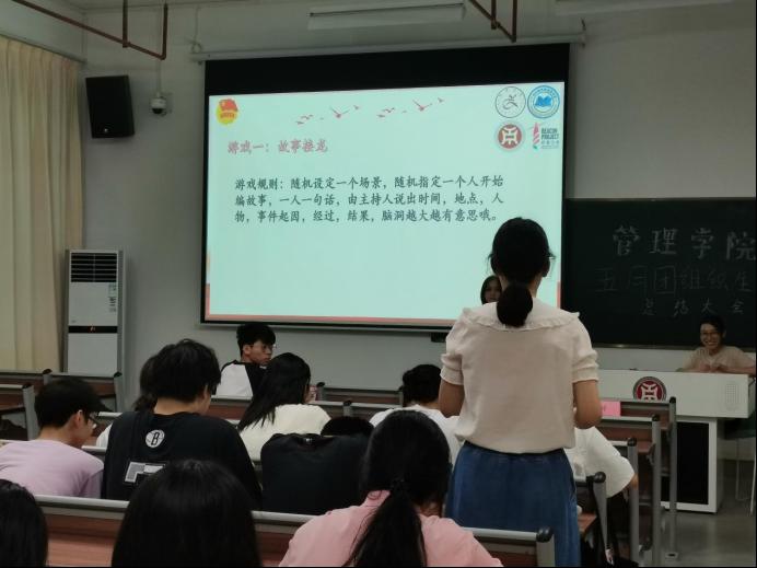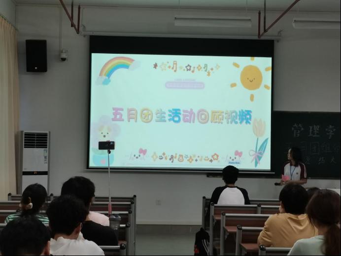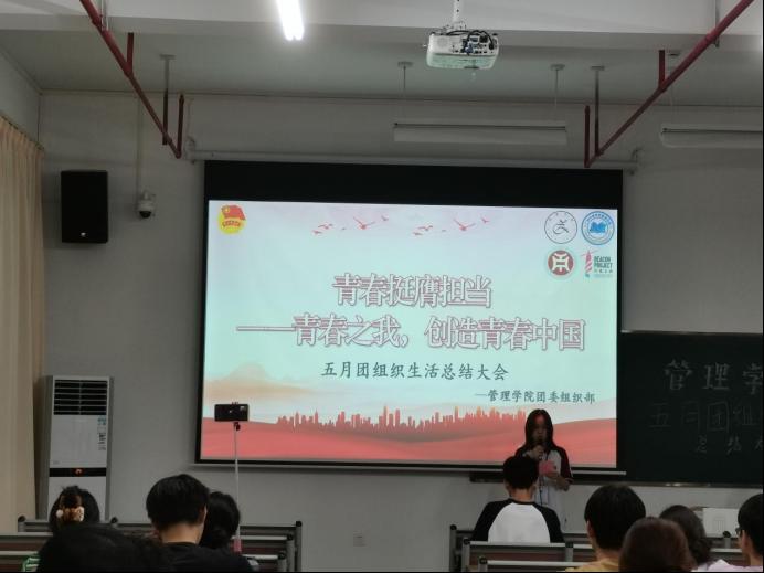 管理学院团委于5月23日晚上7时,在肇庆校区8号楼506教室举办主题为“青春挺膺担当——青春之我,创造青春中国”五月团组织生活总结大会,广州校区采用线上直播的形式同时举行。