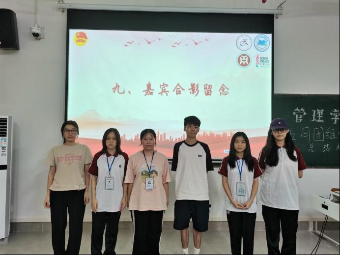 出席本次总结大会的嘉宾有:管理学院团委兼职副书记刘冠毅,管理学院学生会主席团成员陈佳辉,创意与设计学院团委组织部负责人丘婷,校学生团委组织部工作人员黄海楷。