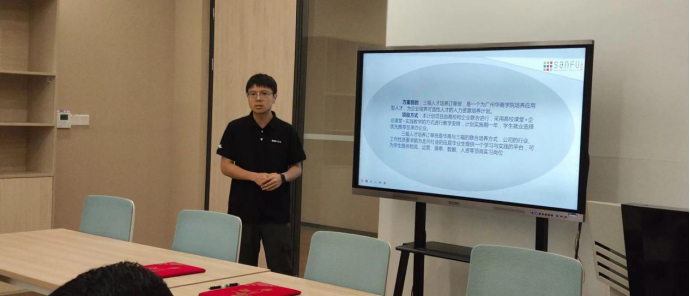 嘉宾介绍完后,企业方代表蔡东辽经理围绕着背景介绍、三福人才订单班基本情况及实习就业安排对订单班的基本情况做了介绍。