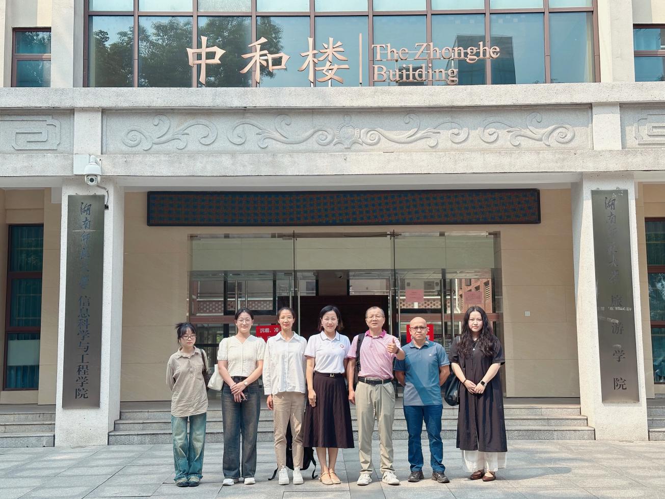 图6 调研团队在湖南师范大学旅游学院中和楼前合影