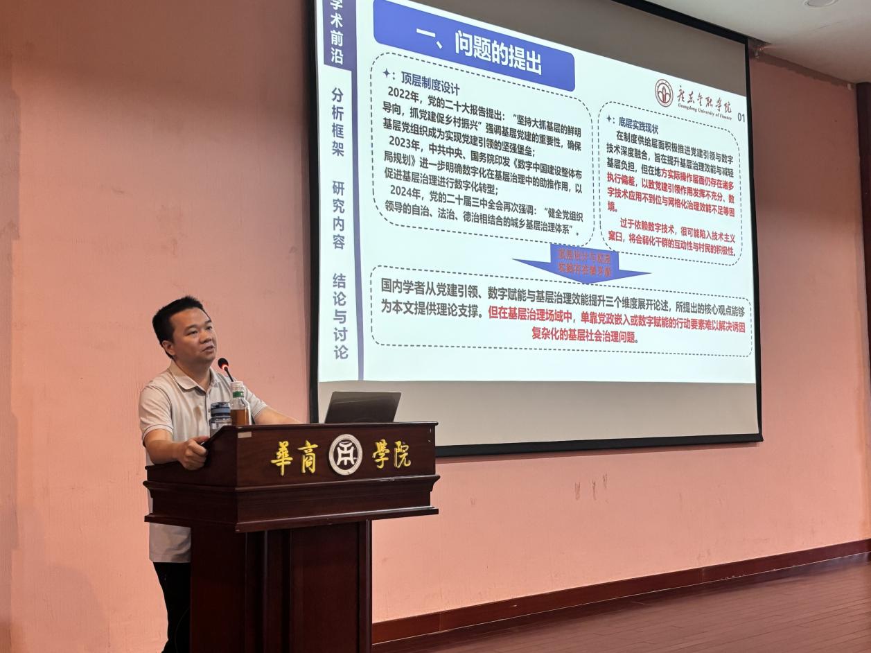 在数字化浪潮席卷全球的今天,如何将党建引领与数字技术相结合,提升基层治理效能,成为了一个时代课题。2024年10月22日下午14点30分-17点30分,管理学院有幸邀请到了广东金融学院公共政策与治理创新研究中心的张国磊副教授,为我校学子带来了一场主题为“党建引领、数字赋能与基层网格化治理效能提升研究”的精彩讲座。公共管理系张秀丽副主任以及师生代表参加了本次讲座,讲座由张秀丽副主任主持。