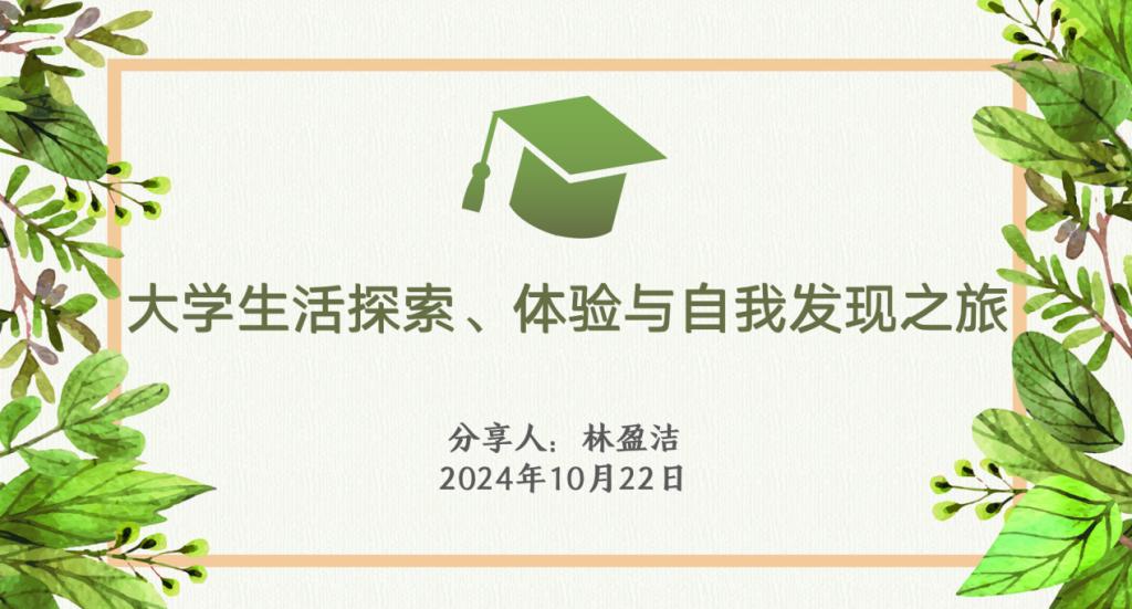 为引导我校学子精准定位未来奋斗目标,科学规划大学四年学习生涯,管理学院携手校友办于2024年10月22日19时30分倾心打造了一场主题为“大学生活:探索、体验与自我发现之旅”的精彩分享会。本次分享会采用腾讯会议线上平台进行,荣幸邀请到2022届杰出校友林盈洁学姐担任主讲嘉宾,与我校学子共话成长之路。