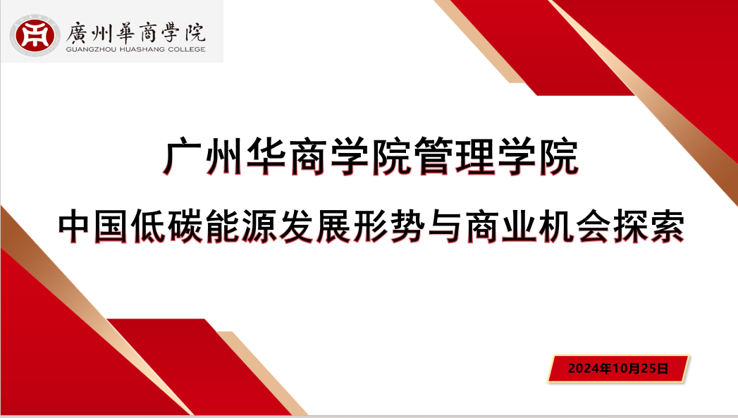 2024年10月25日下午两点十分,管理学院工商管理系在广州校区励志楼B104顺利举行了一场关于低碳能源发展形势与商业机会探索的讲座——《中国低碳能源发展形势与商业机会探索》。本次讲座由广州市海洋地质调查局博士后研究员工学博士肖长文先生主讲。