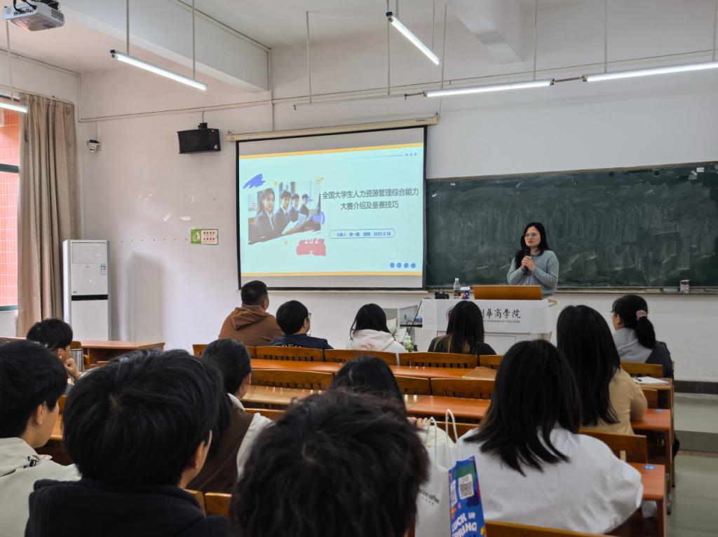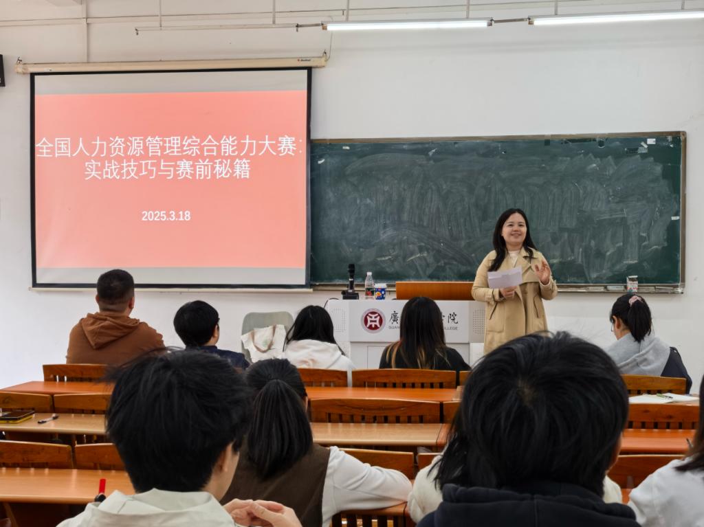 2025年3月18日下午,管理学院在励志楼C302成功举办了一场题为“全国人力资源管理综合能力大赛:实战技巧与赛前秘籍”的讲座。本次讲座旨在为即将参加第十届全国人力资源管理综合大赛的学生们提供专业的赛前指导和实战技巧,帮助他们更好地备战大赛。