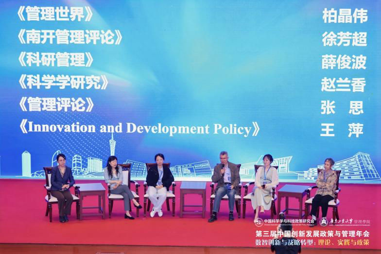 本次会议设置了13场主旨报告、15个平行分论坛和6家期刊见面会。在平行论坛环节,240余位作者汇报了学术论文,60余位优秀学者担任主持和点评人,讨论涵盖数智创新与转型、创新发展的中国模式、创新网络与创新生态系统、科技创新政策与平台支撑、政策组合与创新发展、创新链人才链与产业链融合发展、数智赋能战略转型、数智赋能产业高质量发展、数绿协同创新发展、数智人才发展与创新、数据要素市场化与伦理治理、数智化与治理体系现代化等前沿议题。在期刊见面会上,《管理世界》《南开管理评论》《科研管理》《科学学研究》《管理评论》《Innovation and Development Policy》等期刊的代表与参会学者展开深入交流,详细解读期刊的办刊理念、选题方向及投稿规范,为学者们提供了宝贵的学术发表指导。