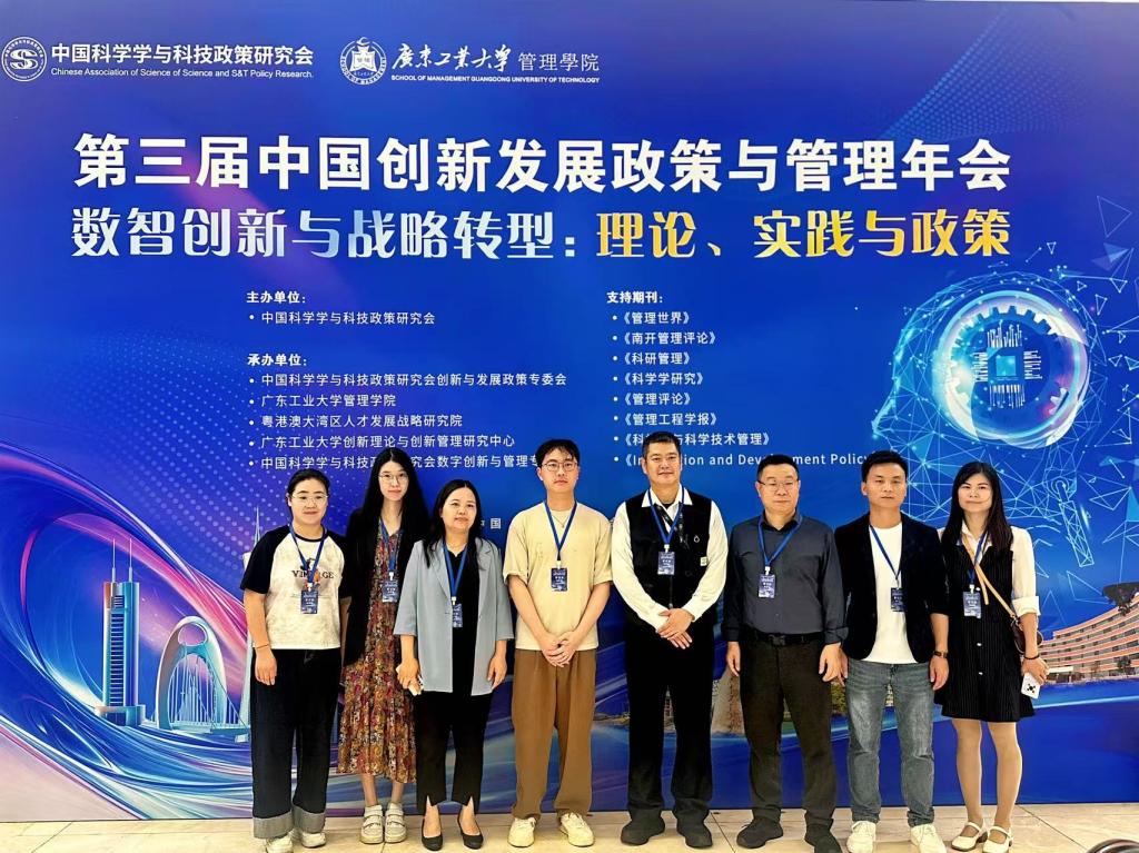 数字化与智能化的浪潮下,数智创新正引发各行各业的深刻变革。为加强学术交流、跟踪学科前沿动态,推动人力资源管理领域的教学与科研创新,我院人力资源系胡才双、刘江泳、田宇、罗怡彬、何丽仪、林洁蓝、刘慧霞、时方方、李尧、赖柱君共10名教师于2025年4月11日至4月13日赴广州白云国际会议中心参加了“第三届中国创新发展政策与管理年会”。
