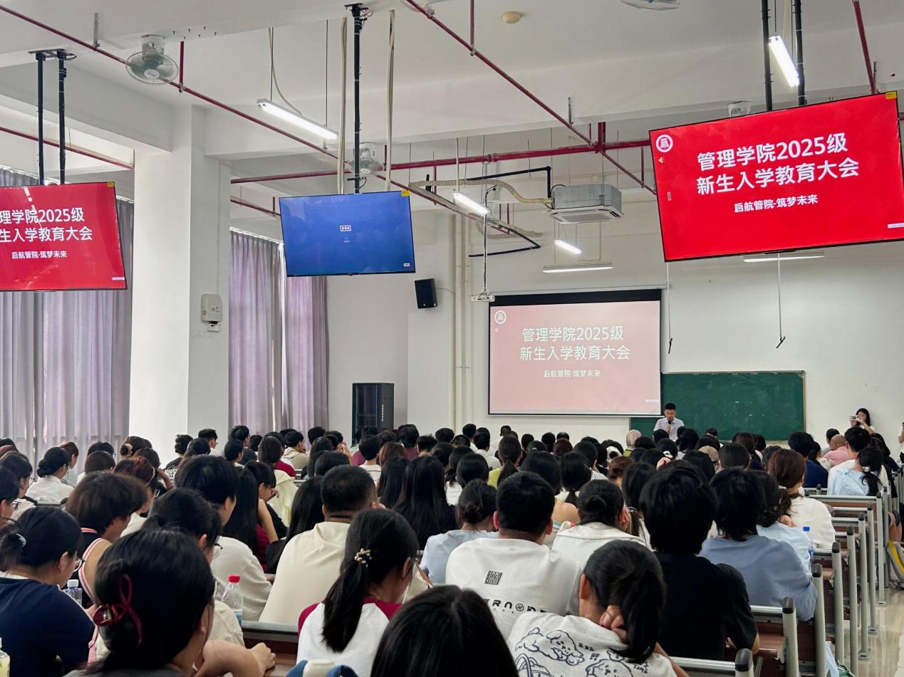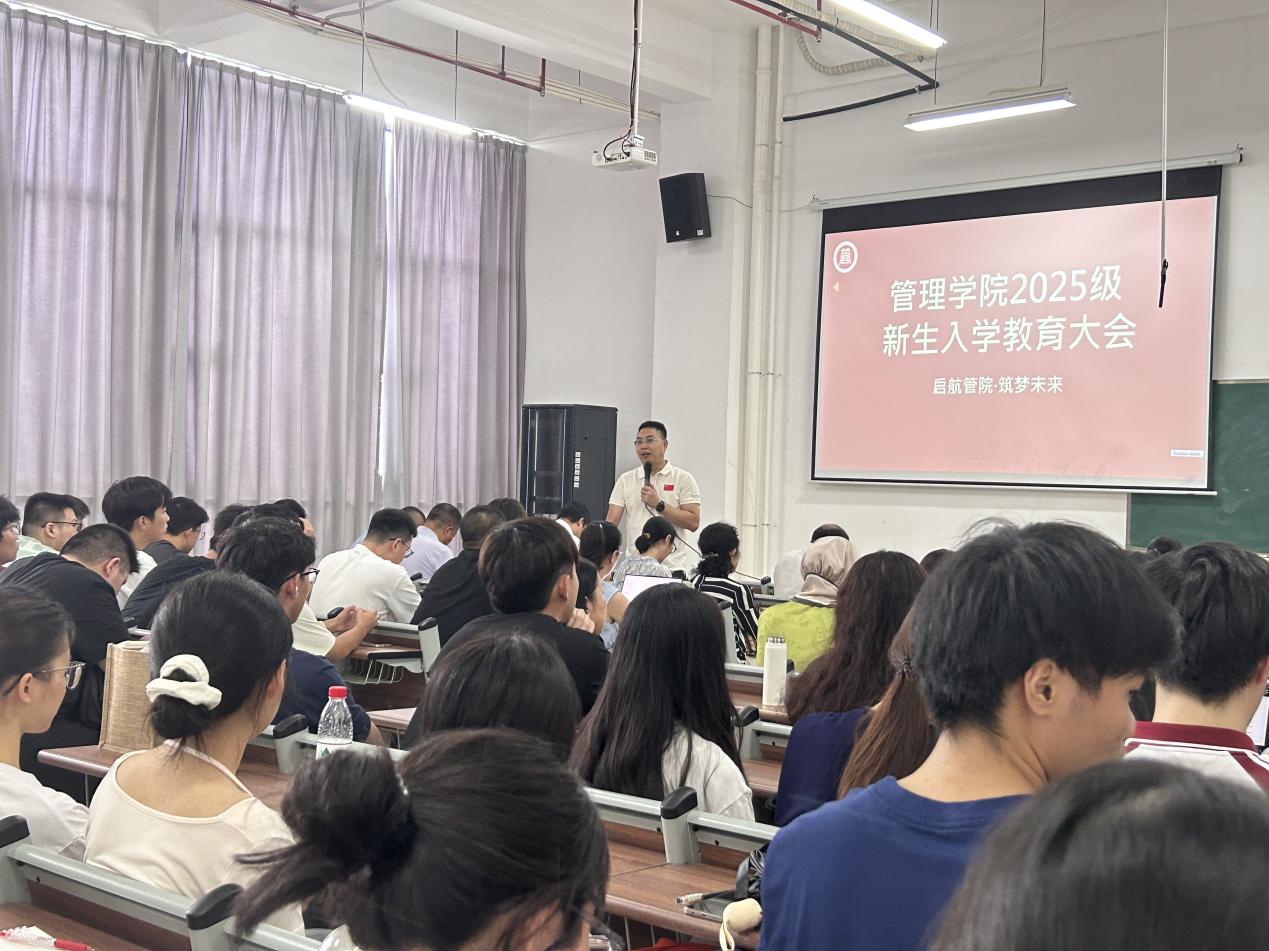 9月16日下午15点,管理学院2025级新生入学教育大会在6号楼201教室顺利举行。本次大会由何威义老师主持,旨在帮助新生快速了解学院、融入大学生活,以全新姿态开启求学之旅。