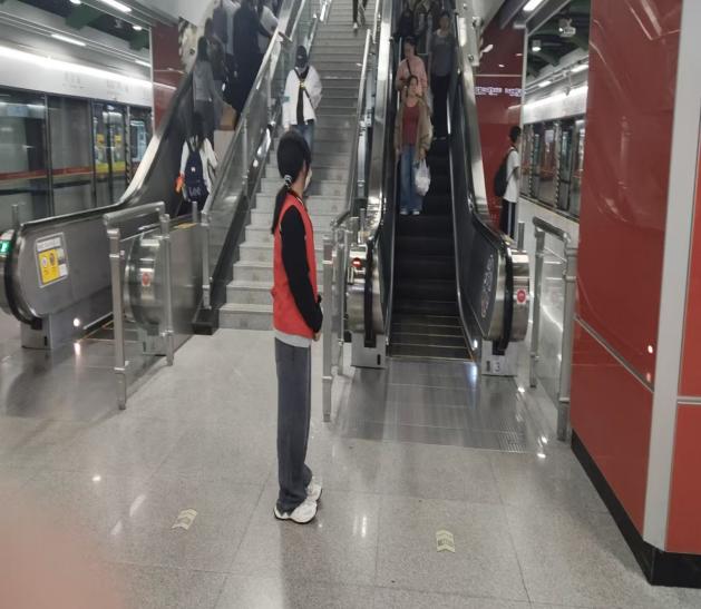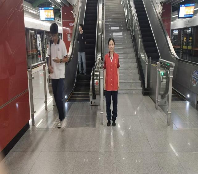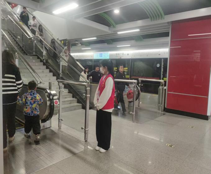 在闸机口、扶梯旁、站台边,志愿者们坚守岗位,成为流动的“安全指引牌”。他们面带微笑,提醒乘客“请刷卡进站,注意脚下安全”“扶梯上请站稳扶好,照顾好老人和小孩”;看到行动不便的老人、孕妇或推婴儿车的乘客,他们第一时间上前协助,引导致无障碍通道,全程陪同进站候车;高峰时段,他们有序疏导人流,避免拥挤踩踏,让每一位乘客都能安全、顺畅地出行。