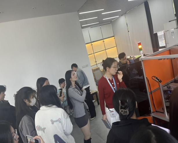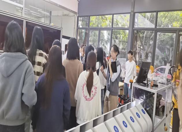 随后,师生们前往百度飞桨(广州)中心展厅开展实地参访。作为百度飞桨在广州的核心展示窗口,该展厅集中展示了百度飞桨在人工智能领域的最新技术成果、创新应用及跨行业落地案例。展厅内通过丰富的实物展品、互动体验区及多媒体展示形式,全方位呈现人工智能技术原理、百度飞桨深度学习平台核心功能及人工智能在多领域的应用场景,师生们还现场体验了数字人等前沿科技成果,全面且直观地理解人工智能技术体系,以及技术对智能未来发展的支撑作用。
