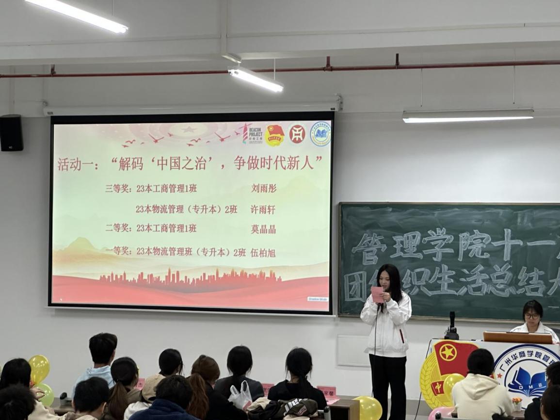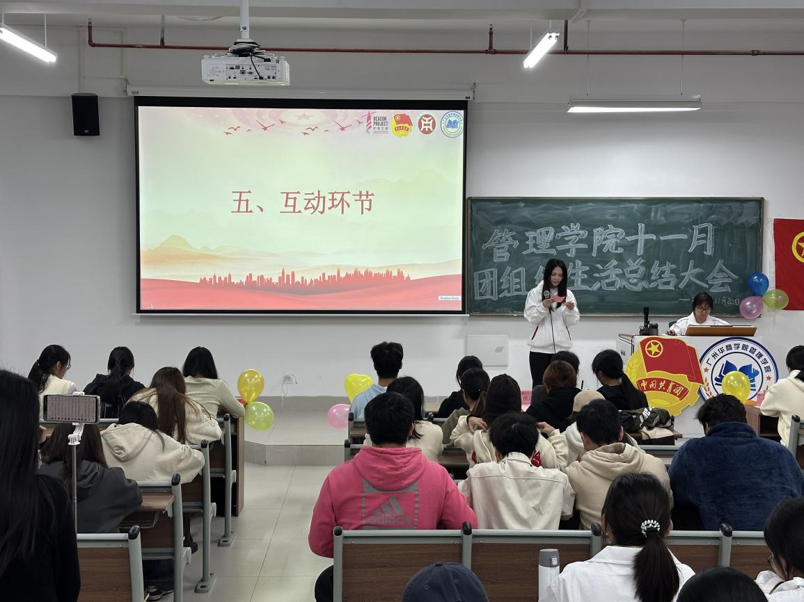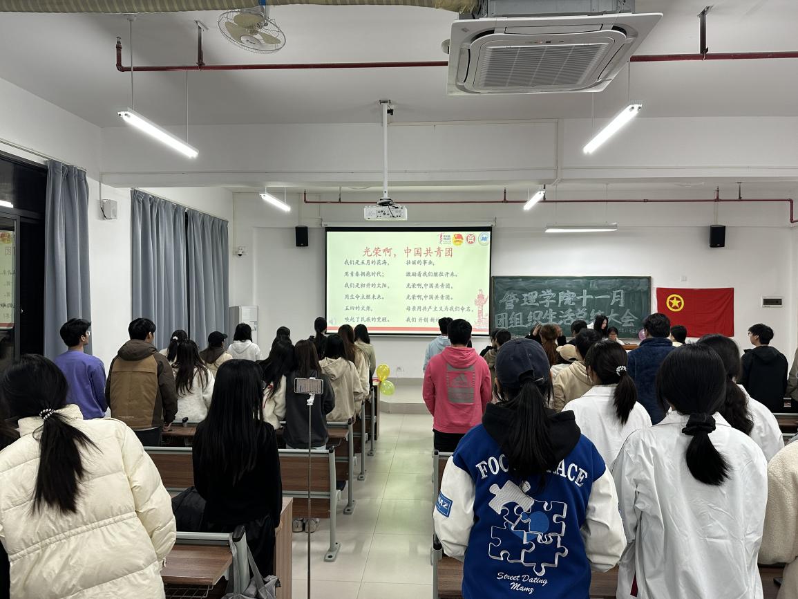 为让同学们更好地学习党的二十届四中全会精神,更好地用党的二十届四中全会精神武装自身,更好地贯彻落实党的二十届四中全会精神。管理学院团委组织部于11月20号晚19:00在肇庆校区16号楼310开展了以“党的二十届四中全会精神”为主题的十一月团组织生活总结大会。接下来让我们一起回顾一下那些精彩的大会瞬间吧!