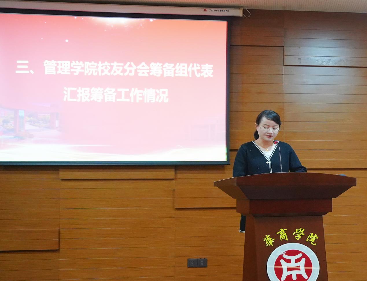 随后,管理学院副书记陈纯华作为校友分会筹备组代表,详细介绍了校友分会的筹备过程,凝聚了师生与校友的心血,为分会的规范运行奠定了坚实基础。