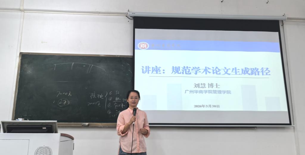为帮助毕业班学生系统掌握学术论文写作规范,提升科研素养与论文质量,2026年3月30日下午刘慧老师在广州华商学院广州校区励志楼C401举办了题为《规范学术论文生成之路》的专题讲座。现场座无虚席,气氛热烈,来自各专业的百余名学生到场聆听。
