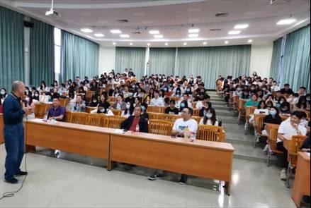 最后,郝教授带领在场师生齐读:脚踏实地,推己及人,诚心诚意为人民服务,行无为之为,竞不争之争,夫唯不争,天下莫能与之争!报告会场朗朗读书声将此次学术报告会推向高潮。