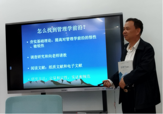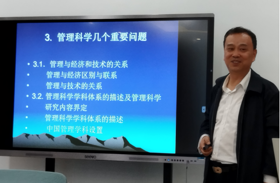 李教授讲座主要包括什么是管理前沿,怎么找到管理学前沿,经济学与管理学之间的关系,管理原理的简单应用和创造性应用,管理的哲学本质,管理和技术、经济的关系等管理科学几个重要问题等内容。李教授还分享了在做科学研究的心得体会,希望老师们做研究要用理论来解决经济社会发展实际问题,把论文写在祖国的大地上。讲座结束后,我院青年教师就研究选题、数据收集和研究方法选择等问题与李教授展开交流,李教授深入浅出的讲座让参会老师获益良多。
