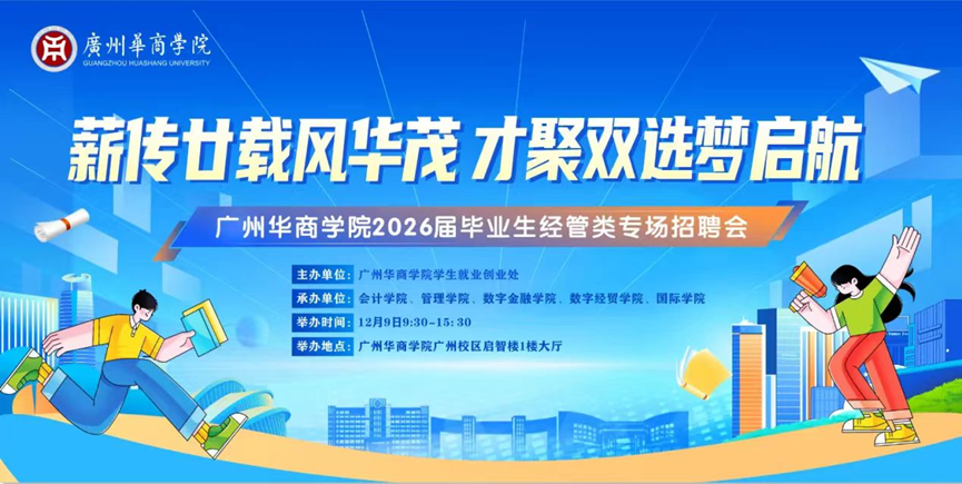 广州华商学院于2025年12月9日在广州校区启智楼一楼大厅成功举办2026届毕业生经管类专场招聘会。本场招聘会由就业创业处主办,会计学院、管理学院、数字金融学院、数字经贸学院和国际学院共同承办。