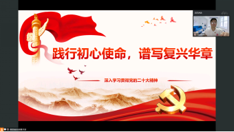 为了深入学习贯彻党的二十大精神,积极响应学校防疫政策的要求,管理学院学生党支部于2022年11月15日下午18:00在线上腾讯会议开展了“践行初心使命,谱写复兴华章——深入学习贯彻党的二十大精神”主题党日活动。参加此次活动的人员有管理学院学生党支部全体同志。