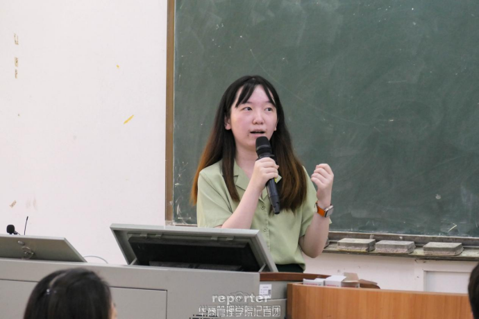 紧接着,曾嘉欣经理对红海文化体系及创业工作室直播带岗项目进行讲解。讲解分为红海文化体系介绍、直聘直播平台功能介绍和创业工作室创建流程三部分。第一,红海从创新到现在数字化的新征程,已经经历了23年的历程,与广州华商学院管理学院合作的创业工作室的项目,也涵盖在红海文化体系核心价值观里的创新、创业、奋斗、分享的一部分。第二,红海直聘平台是一个有PC端、移动端、小程序和校招等板块的综合性平台,以实现提升人岗匹配、降本提效为目的,其中红海直聘平台的直播带岗活动近3000场、浏览量近1000万人次、观看人数80万、企业注册近1万家,解决了求职难、企业招聘难等问题。曾经理表示创业工作室从注册工作室名称到税务及银行许可证办理等流程,红海都会协助同学们一起完成。