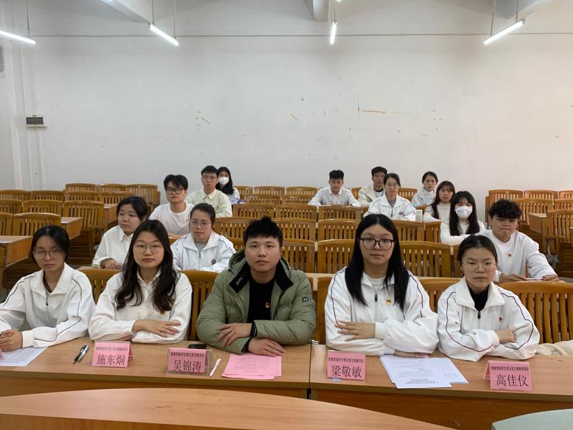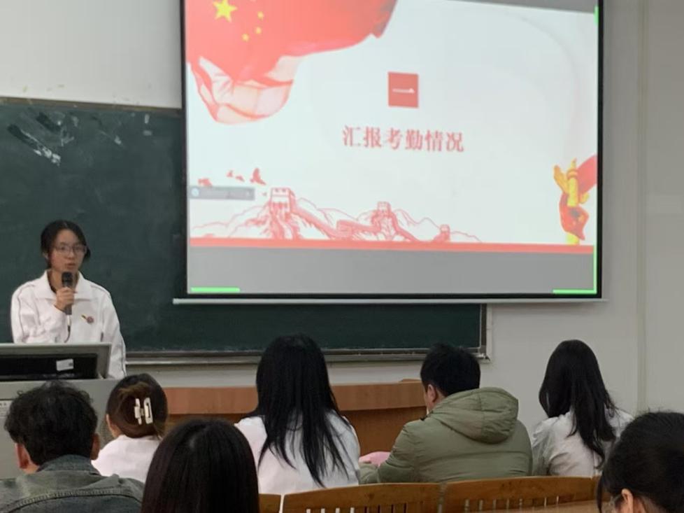由管理学院学生第五党支部纪律检查委员洪美婷同志宣读考勤情况。