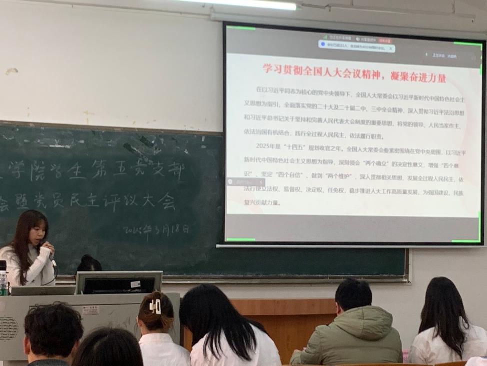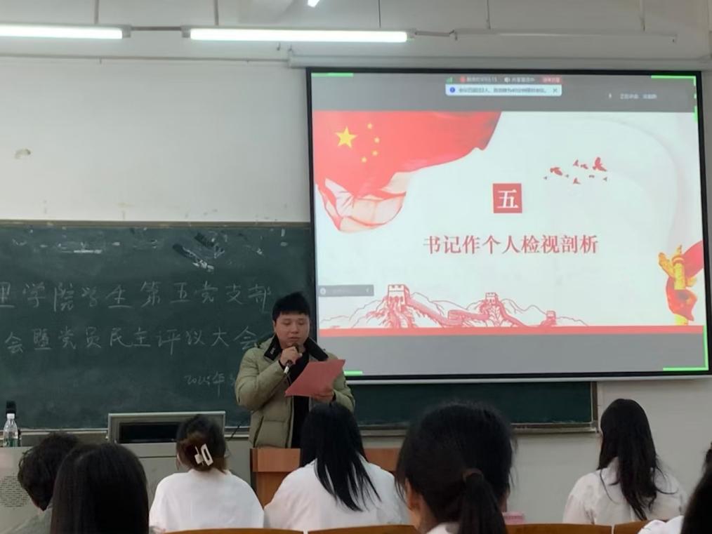 为加强对党员的教育、管理和监督,促进党员学习,提高党员素质,管理学院学生第五党支部于2025年3月18日在励志楼C104召开管理学院学生第五党支部组织生活会暨民主评议党员大会。出席本次会议的有:管理学院学生第五党支部书记吴锦涛同志以及管理学院学生第五党支部全体学生党员。
