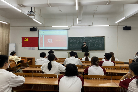大会第三项,管理学院学生第一党支部纪律检查委员张桃同志强调党课培训的纪律要求和注意事项。