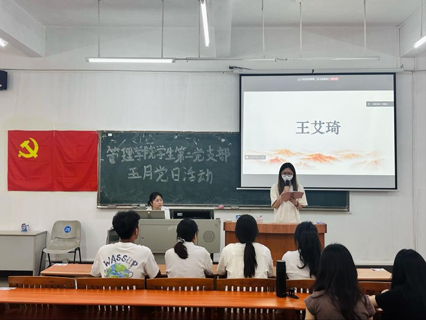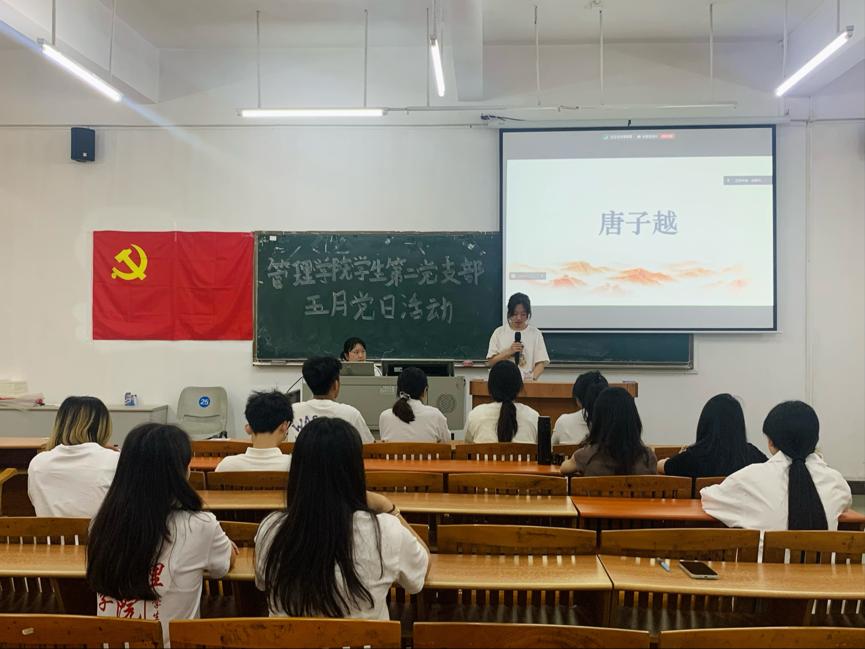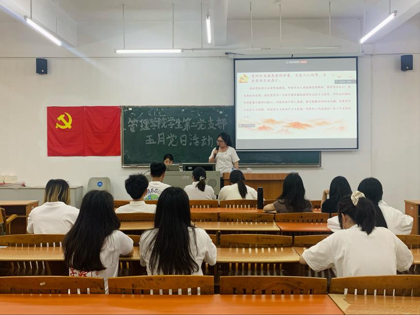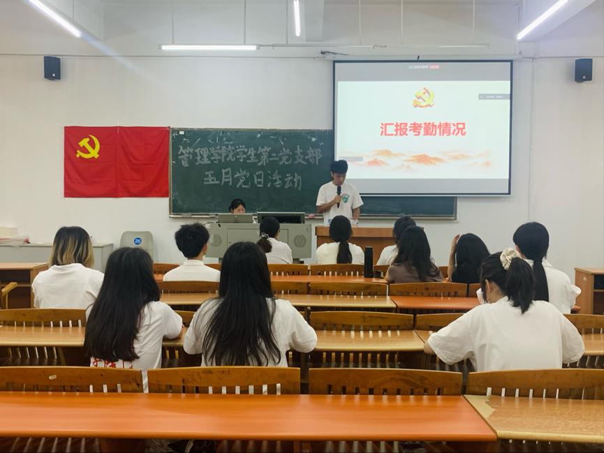 首先,主持人简单介绍了此次五月党日活动的流程,接着由管理学院学生第二党支部林卓栋同志汇报本次大会考勤情况。