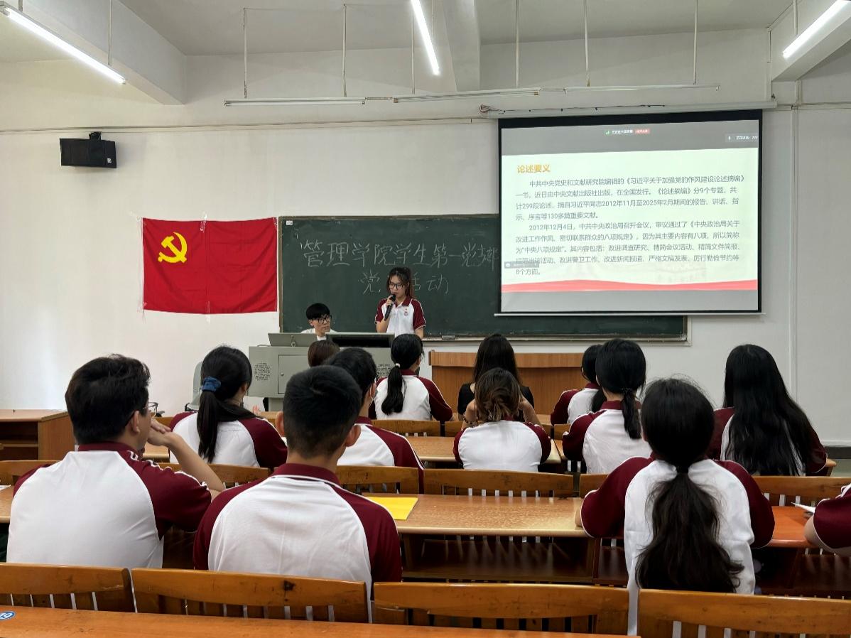 至此,管理学院学生第一党支部“悟论述要义强作风,守规定底线固党基”主题党日活动圆满结束。活动最后,与参会人员合影留念,共同记录下这一难忘的时刻。此次活动不仅加深了同志们对党的理论知识的理解,更增强了大家的政治意识与纪律意识,激励着他们在今后的学习、生活与工作中,以良好的作风践行党的宗旨,为党的事业不懈奋斗。
