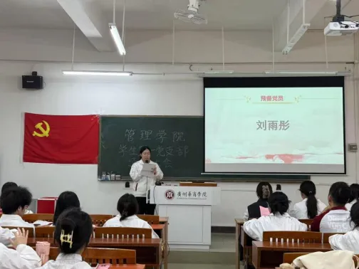 为进一步加强基层党组织建设,发展壮大学生党员队伍,切实提高党员发展质量,保持党员队伍先进性和纯洁性,按照党员发展细则和发展程序要求。管理学院学生第一党支部于2025年12月15日在励志楼D104召开管理学院学生第一党支部预备党员期满转正通表大会。出席本次大会的人员有:管理学院学生第一党支部书记黄恩欣同志以及全体支部委员、正式党员、预备党员、重点发展对象。