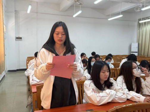 最后,由管理学院学生第一党支部书记黄恩欣同志对本次通表大会进行总结发言。黄恩欣同志对预备党员如期转正表示由衷地祝贺,也对新转正的党员表达了殷切期望,希望大家在未来的道路上能够不忘初心,牢记使命,始终以党员的标准严格要求自己,向优秀党员学习,在学习、生活和工作中不断向党组织靠拢,持续提升党性修养,彰显学生党员的风采。