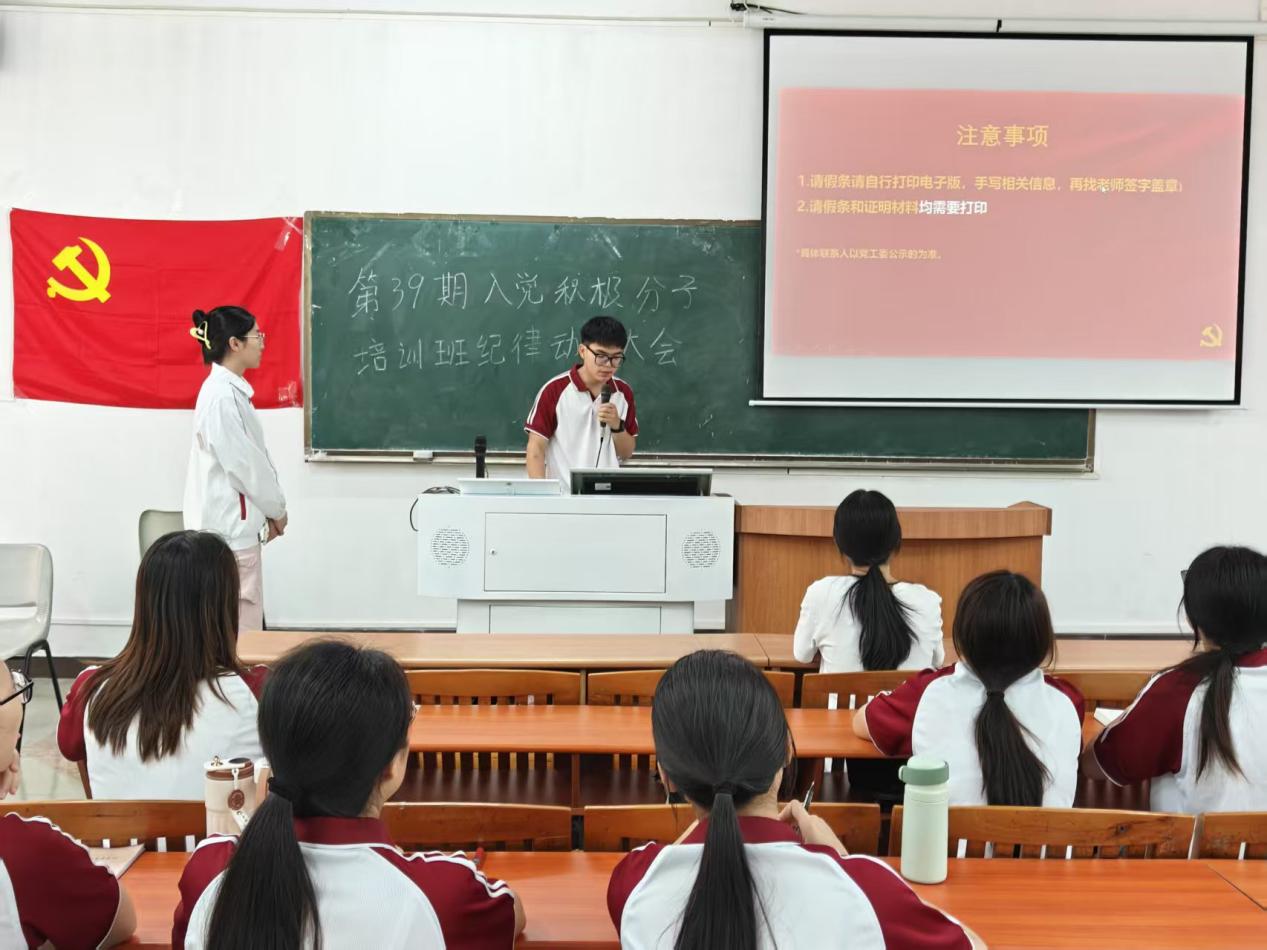 接着,管理学院学生第二党支部汤梓雄同志强调党课培训的纪律要求和注意事项。