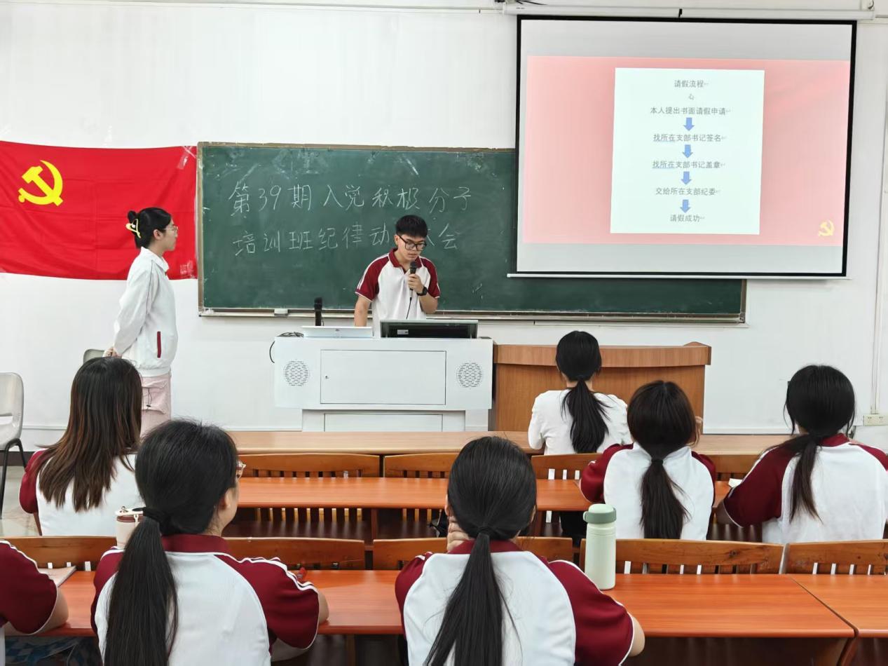 为全面提高入党积极分子思想觉悟,端正入党动机,加强对入党积极分子的教育与培养,高质量推进党员发展工作。管理学院学生党支部于2026年3月25日12时20份在广州校区顺利召开第39期入党积极分子培训动员大会。出席本次大会的有管理学院学生党支部各支部支委、管理学院学生党支部第39期入党积极分子。本次大会由袁婧攸同志主持。