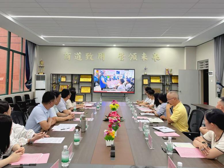 会议由管理学院党委书记袁仕海主持,政、校、村、企、行业协会五方代表齐聚一堂:小楼镇党委副书记谢向扬、小楼镇残联负责人廖嘉杰、小楼镇总工会负责人张易望等政府代表;二龙村村委书记郑朴琴、村委“百千万”负责干部曾炎坤等村集体代表;广东省人力资源研究会副会长兼秘书长汪志红;自强科技集团有限公司城市合伙人卢小菊及广东分公司市场助理梁娱;学校党委组织部部长、党校常务副校长刘善球;学校“百千万工程”办公室主任、增城区"双百行动"专班组长陈洋广;管理学院党委副书记陈纯华;学院党委委员潘思媚、张丽娟;学院教工党支部书记任欣鹭;学院学生党支部书记黄恩欣、李丹琪及广州校区、肇庆校区辅导员等30余人参会,各方围绕党建引领、结对帮扶、产业赋能、人才培育等核心议题,展开深入交流研讨。