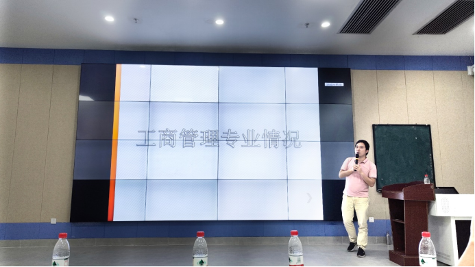 介绍会伊始,吴彬彬老师用通俗易懂的话语向同学们介绍了工商管理专业以及近年来行业所面临的问题,并提出本专业的培养目标。紧接着吴老师介绍了本专业的培养特色:以“知识传授、能力培养、素质提高三者协调发展”的教育理念为导向,以运营管理与创业管理作为重点培养方向,鼓励同学们参加各项创业大赛,重视校企合作,不断提高学生实践能力。随后吴彬彬老师向同学们展示了工商管理专业本科毕业生应修学分参考表,帮助同学们更好的认识和规划。吴彬彬老师还介绍了多家校企合作单位,鼓励同学们去企业实习,积累经验。最后吴彬彬老师向同学们分享了本专业学长学姐的获奖情况,鼓励同学们以此为榜样,努力拼搏,不负韶华。