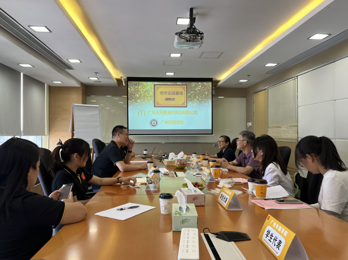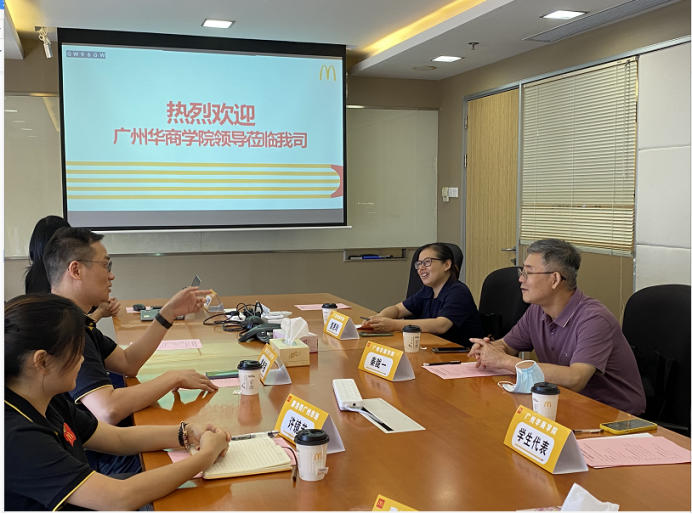 广东三元麦当劳食品有限公司对此次挂牌仪式高度重视,广东三元麦当劳食品有限公司广州市人力资源部高级经理黄孝强、区域经理郑明华、人力资源经理许境芳及招聘负责人吴洁莹等企业高管代表热情接待我院副院长秦陇一教授一行。