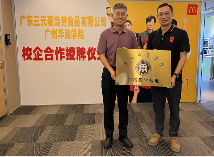 最后,广州华商学院与广东三元麦当劳食品有限公司举行校企战略合作签约仪式暨教学实践基地挂牌仪式。