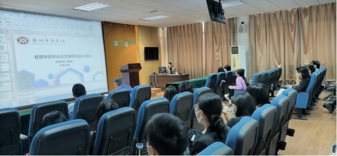 2022年10月18日,管理学院在增城校区厚德楼B407举办了2023届毕业论文指导经验分享专题讲座,邀请了公共管理系主任郑丽芬老师,工商管理系刘连花副教授、林纯老师做指导经验分享,全体新入职教师、未评职称教师及其他教师参加。其目的是为了让新老师深入了解我院毕业论文指导工作要求,更好地把握毕业论文指导过程中重点、难点问题,提升毕业论文质量。